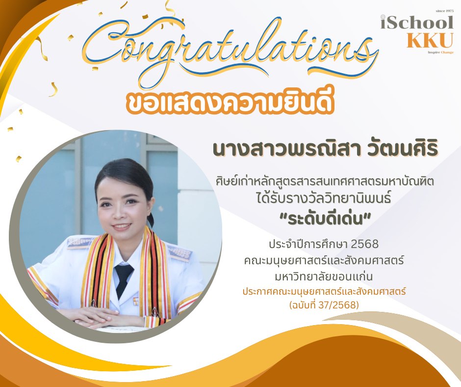 ซึ่งนับเป็นความภาคภูมิใจของiSchool KKU สาขาวิชาสารสนเทศศาสตร์ คณะมนุษยศาสตร์และสังคมศาสตร์