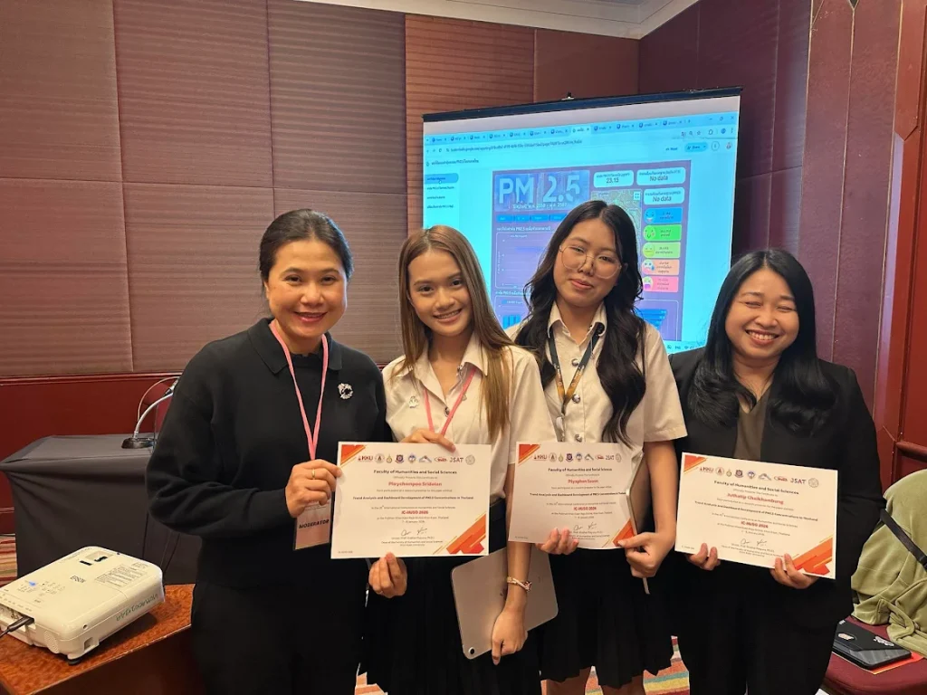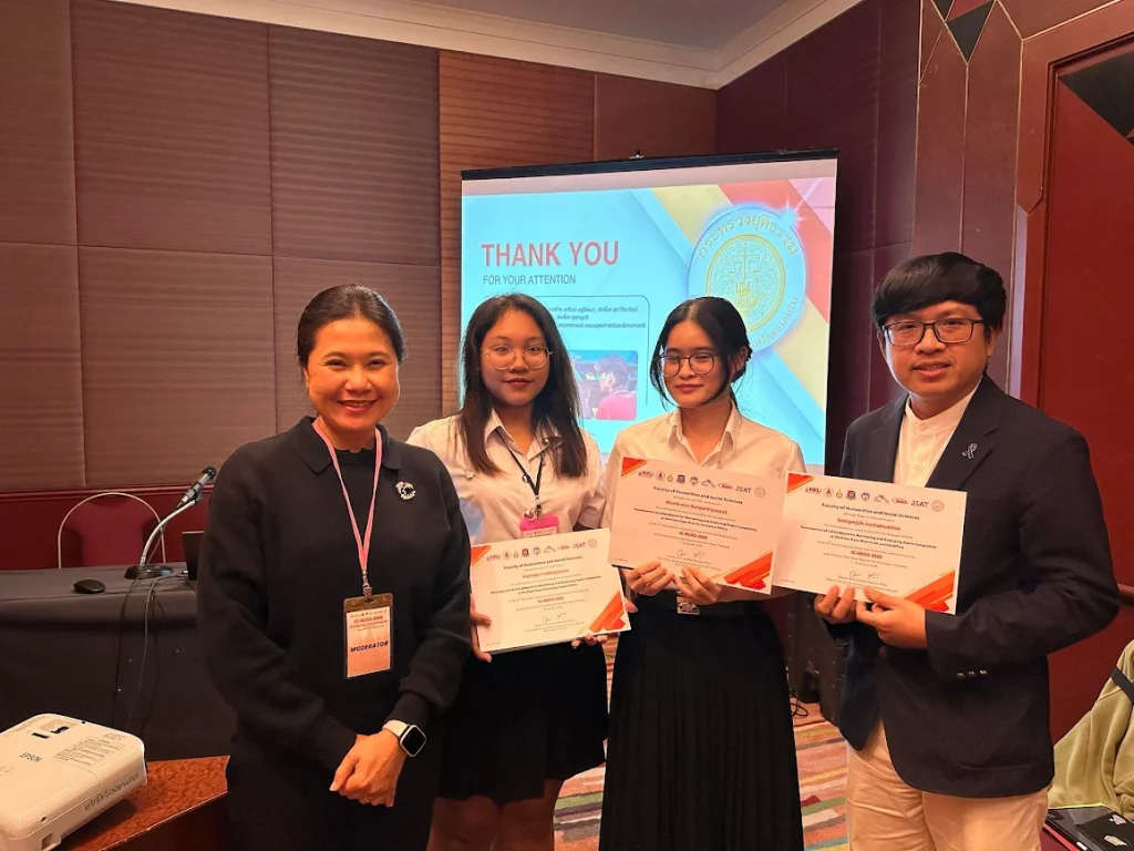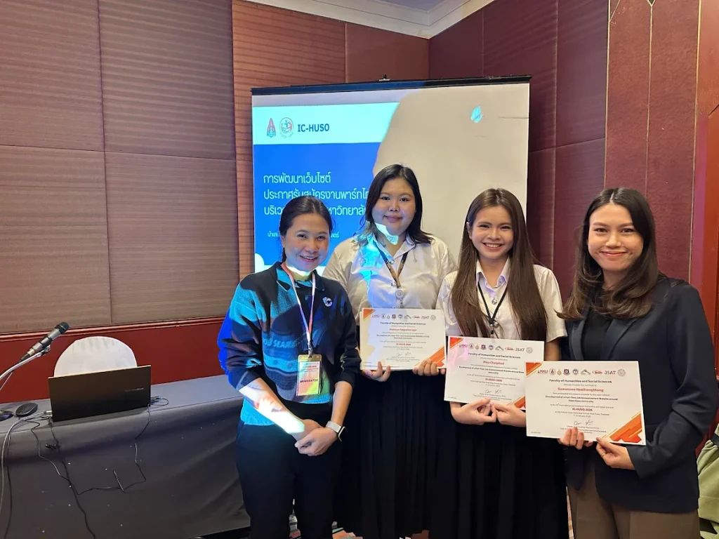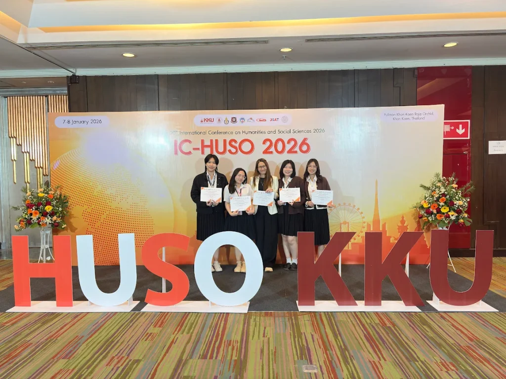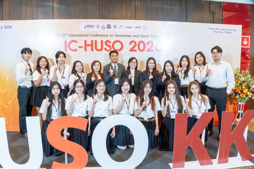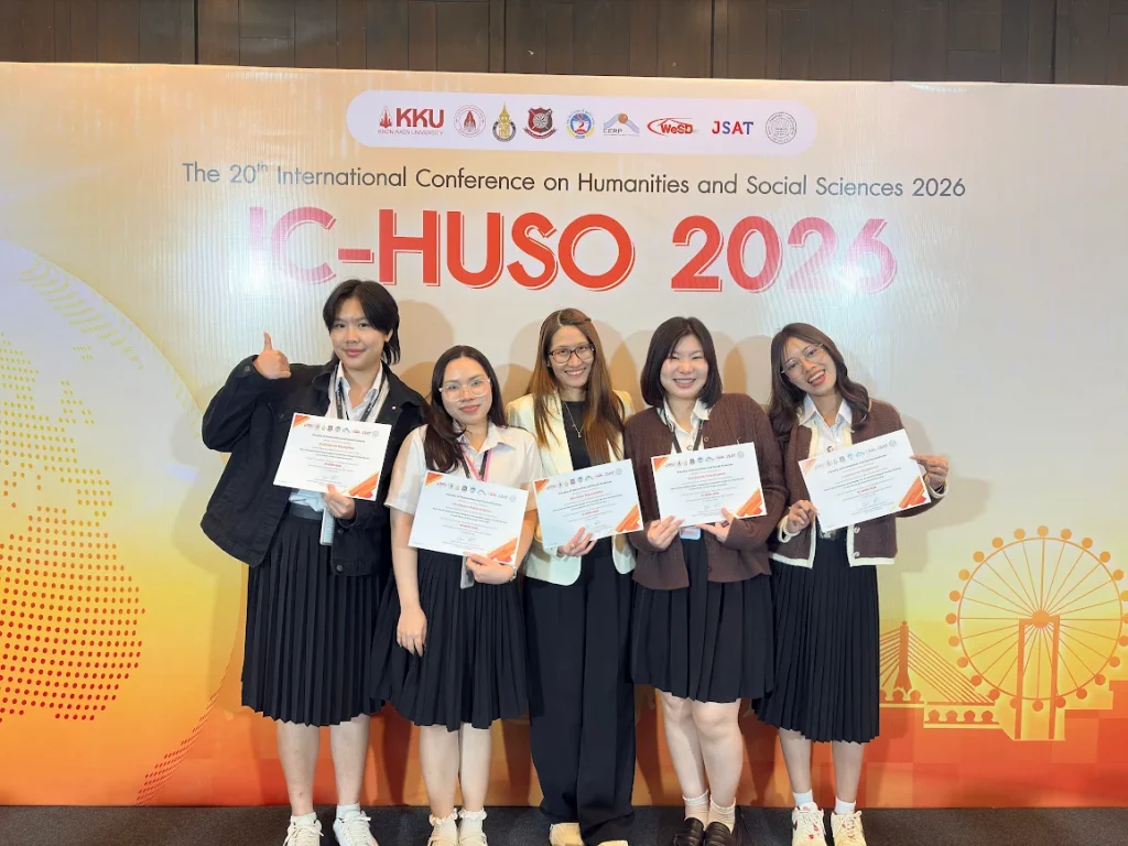 นักศึกษาระดับปริญญาตรีได้เข้าร่วมงานประชุมวิชาการ IC-HUSO 2026 : The 20th International Conference on Humanities and Social Sciences โดยนำเสนอผลงานวิชาการจำนวน 6 บทความ ทั้งในรูปแบบ Paper (บทความวิจัย) ซึ่งได้รับการพิจารณาและตีพิมพ์ใน Proceedings of IC-HUSO และในรูปแบบ Oral Presentation (การนำเสนอด้วยวาจา)