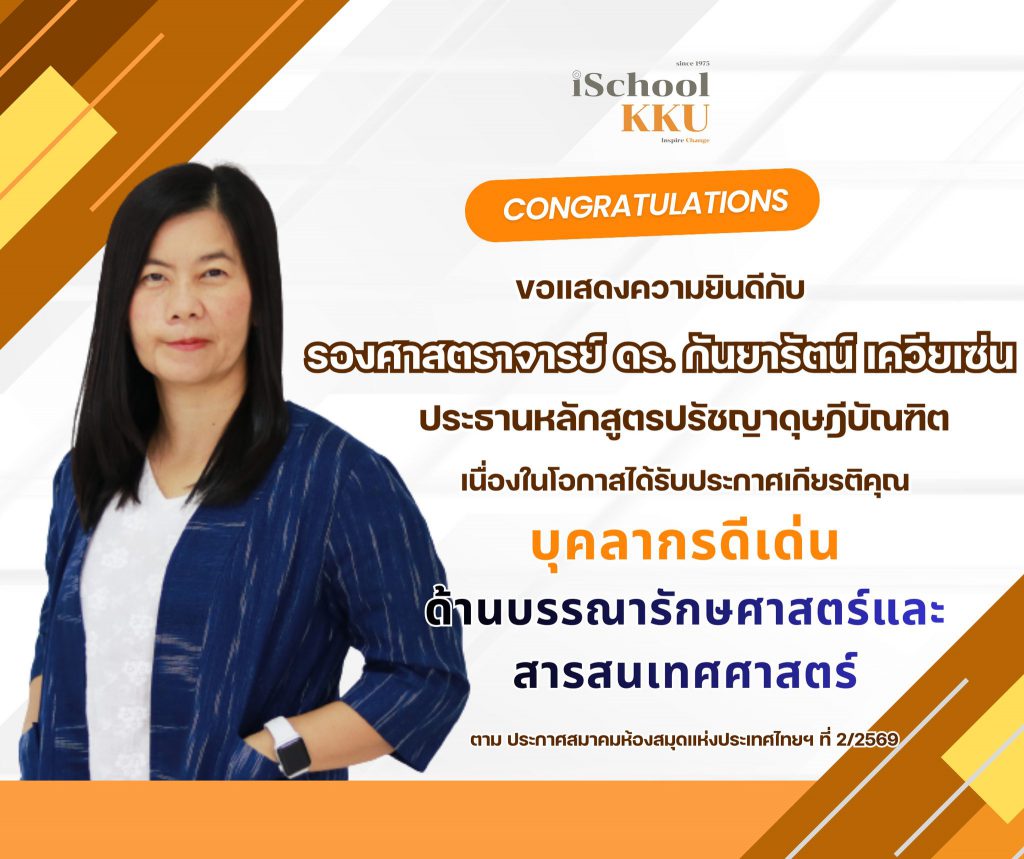 หลักสูตรสารสนเทศศาสตรบัณฑิต (iSchoolKKU) คณะมนุษยศาสตร์และสังคมศาสตร์ มหาวิทยาลัยขอนแก่น ขอแสดงความยินดีกับ
