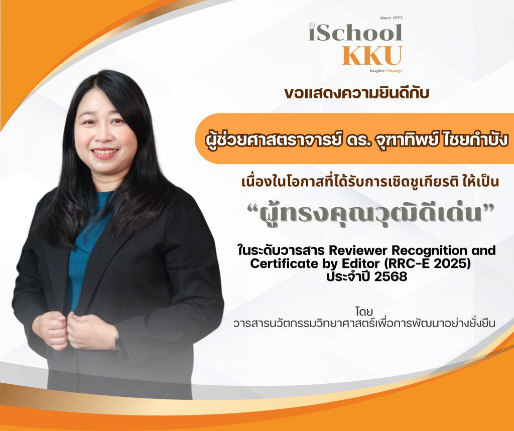 ความสำเร็จในครั้งนี้นับเป็นอีกหนึ่งความภาคภูมิใจของชุมชนวิชาการ iSchoolKKU และสะท้อนบทบาทของคณาจารย์ในการขับเคลื่อนคุณภาพงานวิจัยและการเผยแพร่ผลงานวิชาการในระดับประเทศอย่างต่อเนื่อง